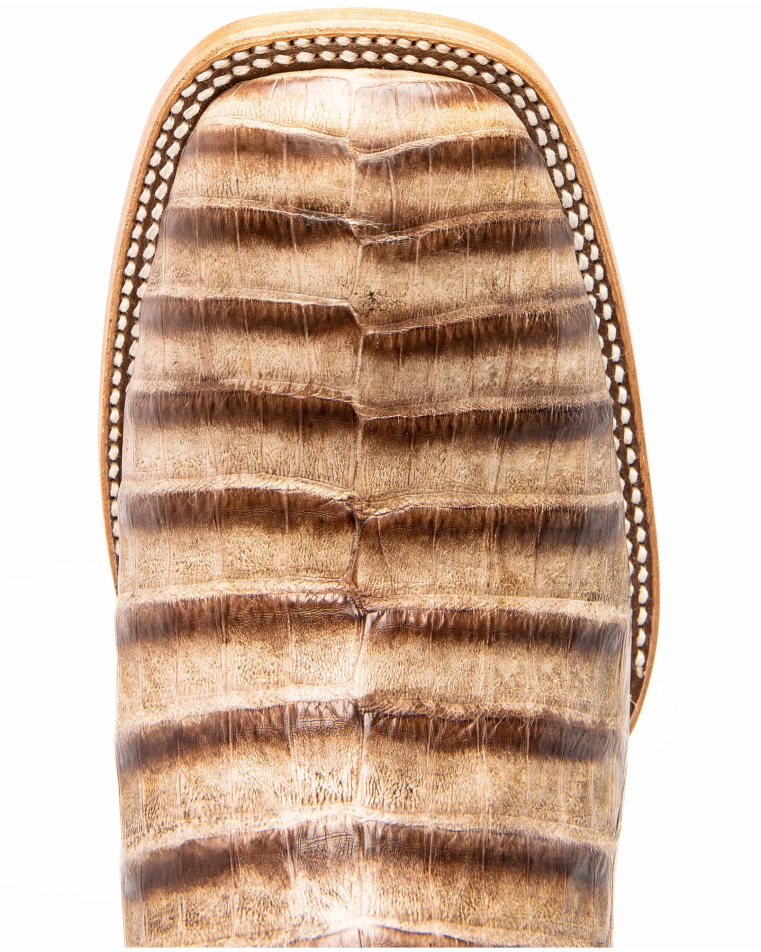 - Caiman belly leather foot, full-grain leather upper