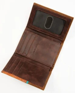 Cody James Men’s Turquoise Underlay & Brown Tooled Trifold Wallet